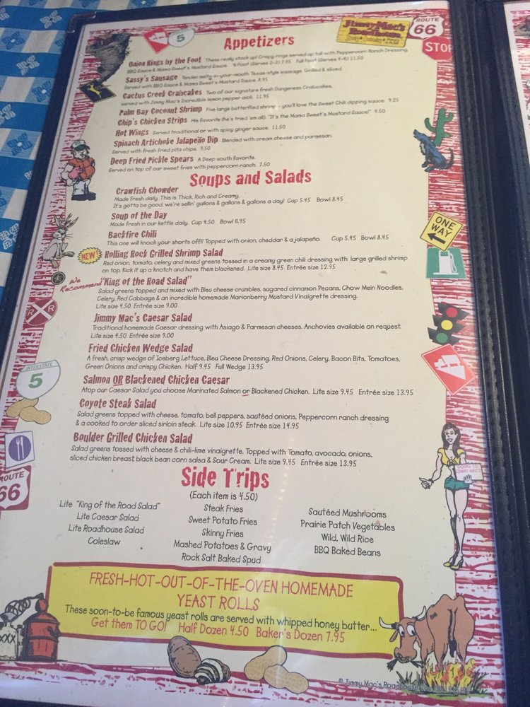 USDA choice or higher. Basted in Jimmy Mac's Secret Seasoning. Served with two side trips