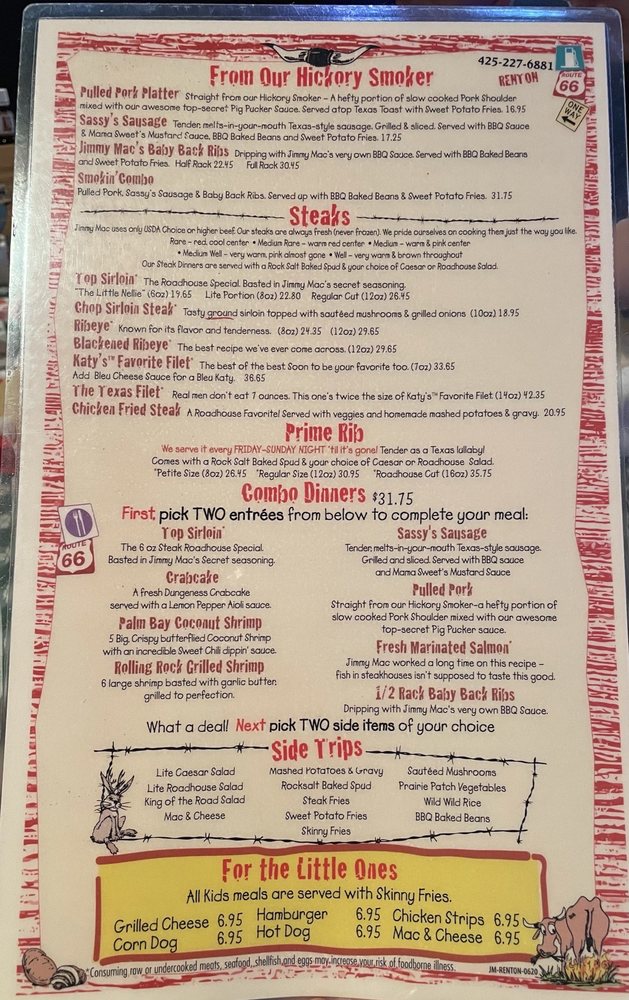 When it comes to American cuisine, Jimmy Mac’s Roadhouse stands out for its diverse menu offerings and welcoming atmosphere. Located in Renton, WA, this restaurant not only provides a range of delicious dishes but also offers amenities like outdoor seating, free Wi-Fi, and even compostable containers. Customers rave about the attentive service, with servers like MaryBeth going above and beyond to make every visit special. The food is consistently tasty, with standout options like the loaded baked potato soup and the chicken fried steak. The country-themed decor adds to the overall experience, making diners feel right at home. If you're craving classic American comfort food with a twist, Jimmy Mac’s Roadhouse is the place to be.